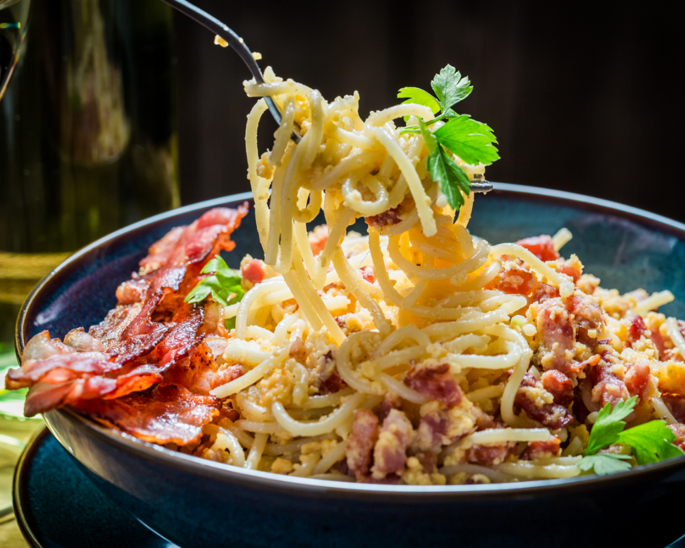 A rich and creamy pasta dish made with crispy pancetta, eggs, parmesan, and black pepper. This Italian classic is indulgent and velvety, offering a perfect balance of smoky and creamy flavors with every bite.