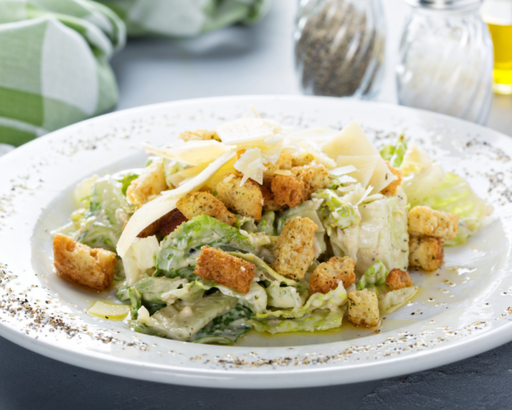 A classic Caesar salad with crisp romaine lettuce, crunchy croutons, and shaved parmesan, topped with a rich Caesar dressing. For a more filling option, add grilled chicken to elevate this timeless favorite.